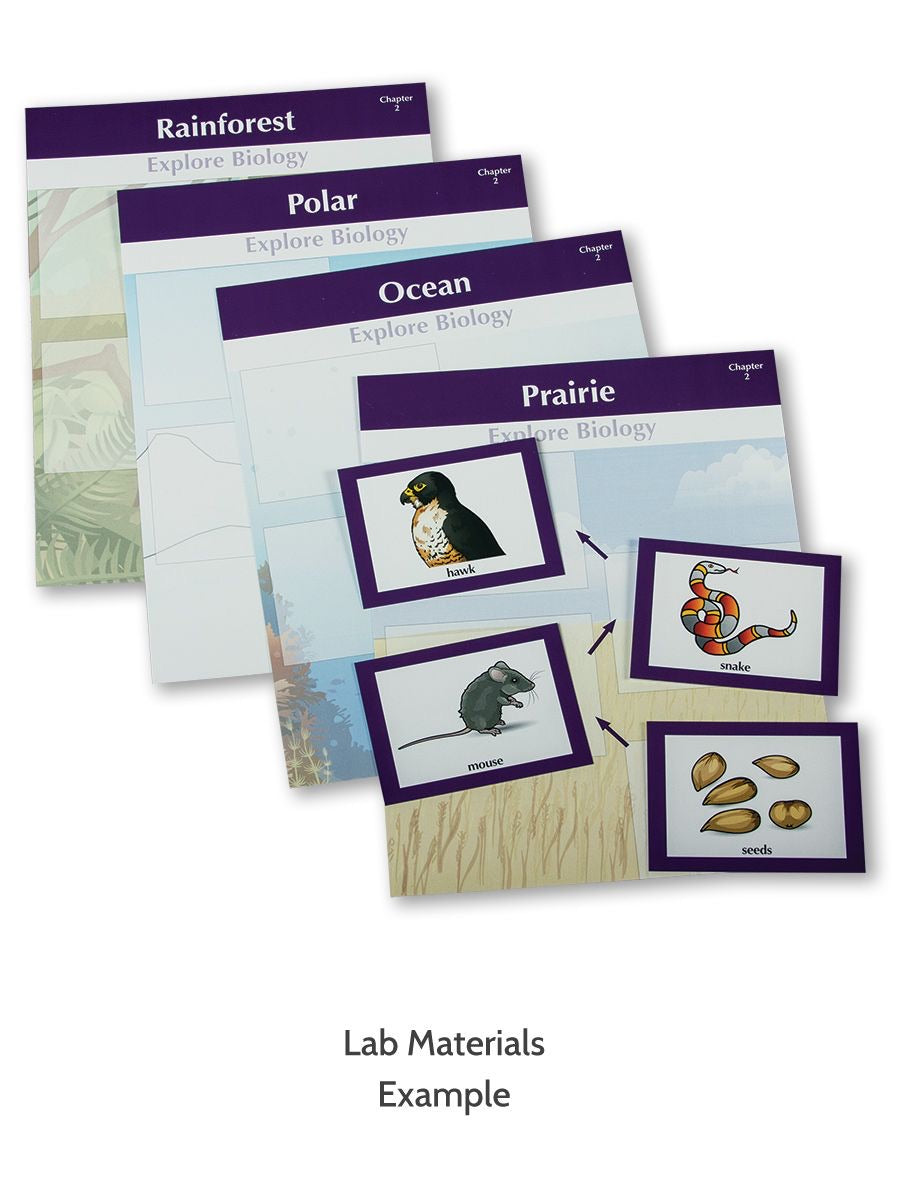 Lab Materials are used for the Lab lesson in each chapter. Most labs have a component that is provided in the lab materials. Many of the labs use special cards for the activity. A high-quality Animal Cell Model is also included as a great hands-on tool to teach about cells!